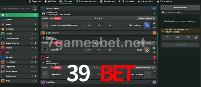 O 39 bet oferece uma grande seleção de opções de apostas em e-sports com probabilidades competitivas